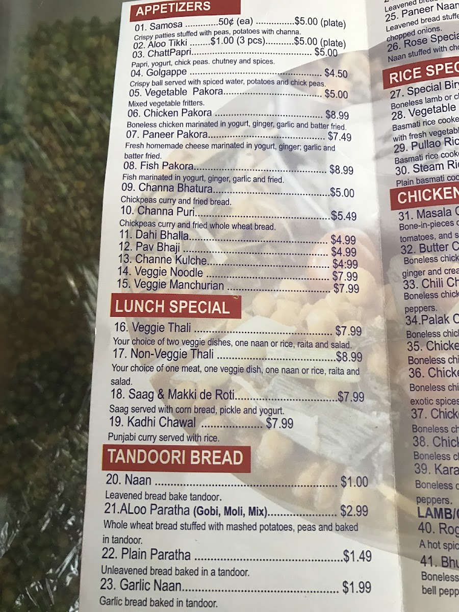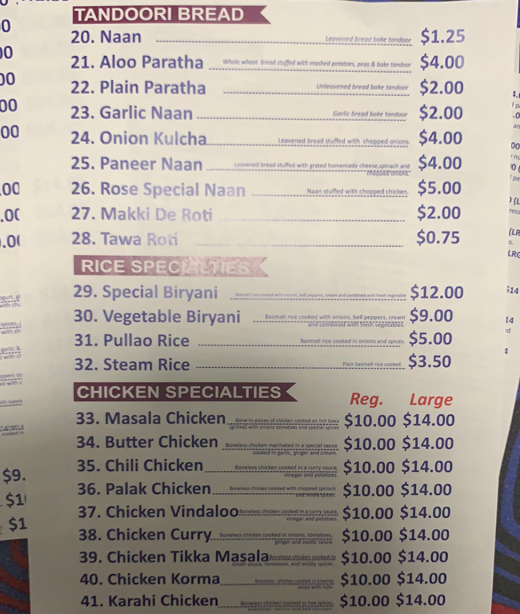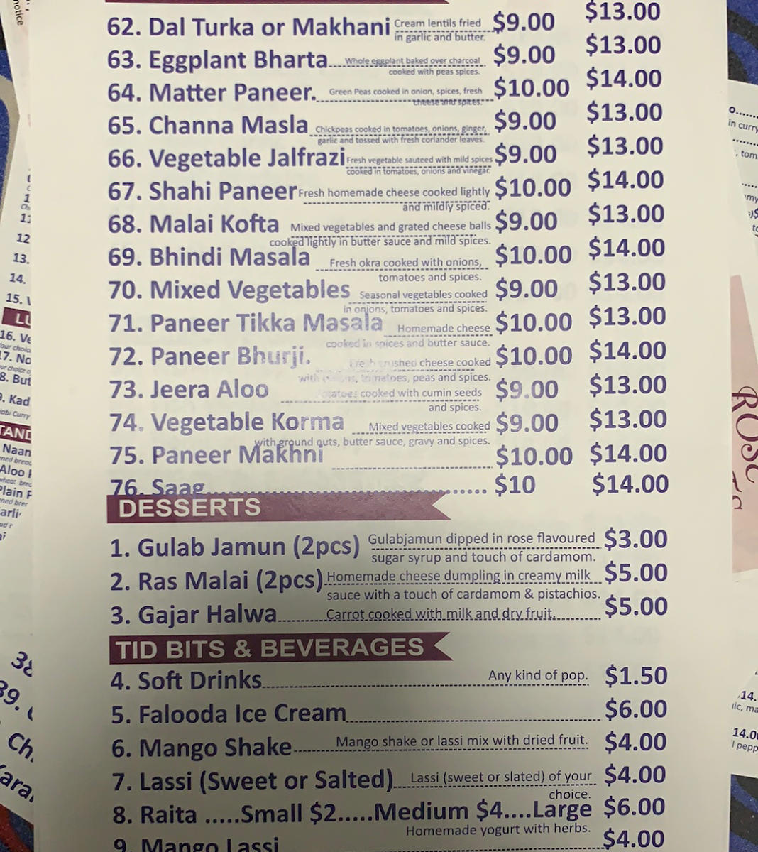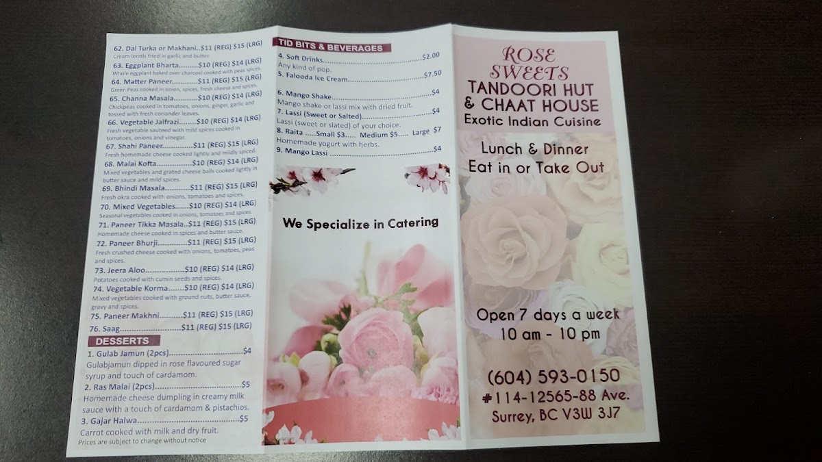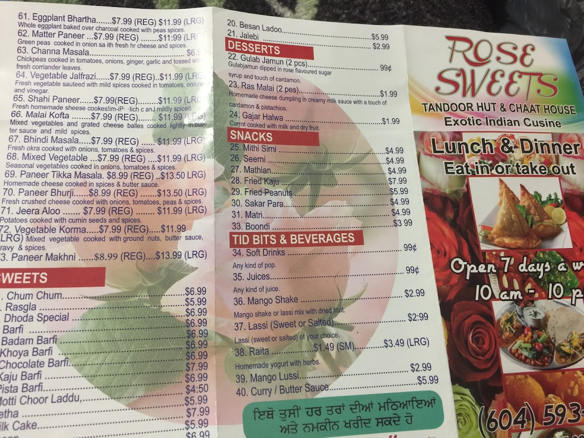 Rose Sweets & Tandoori Hut (88th Ave.) Menu